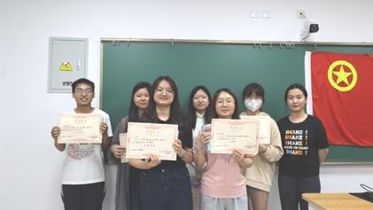经过商讨和打分,共选出了共7位优秀部员,并由各部门部长颁奖。他们分别是——宣传部:张子涵、董作福、童钰佳,组织部:于孜诺、文琪,实践部:迪丽努尔、李秦萱。